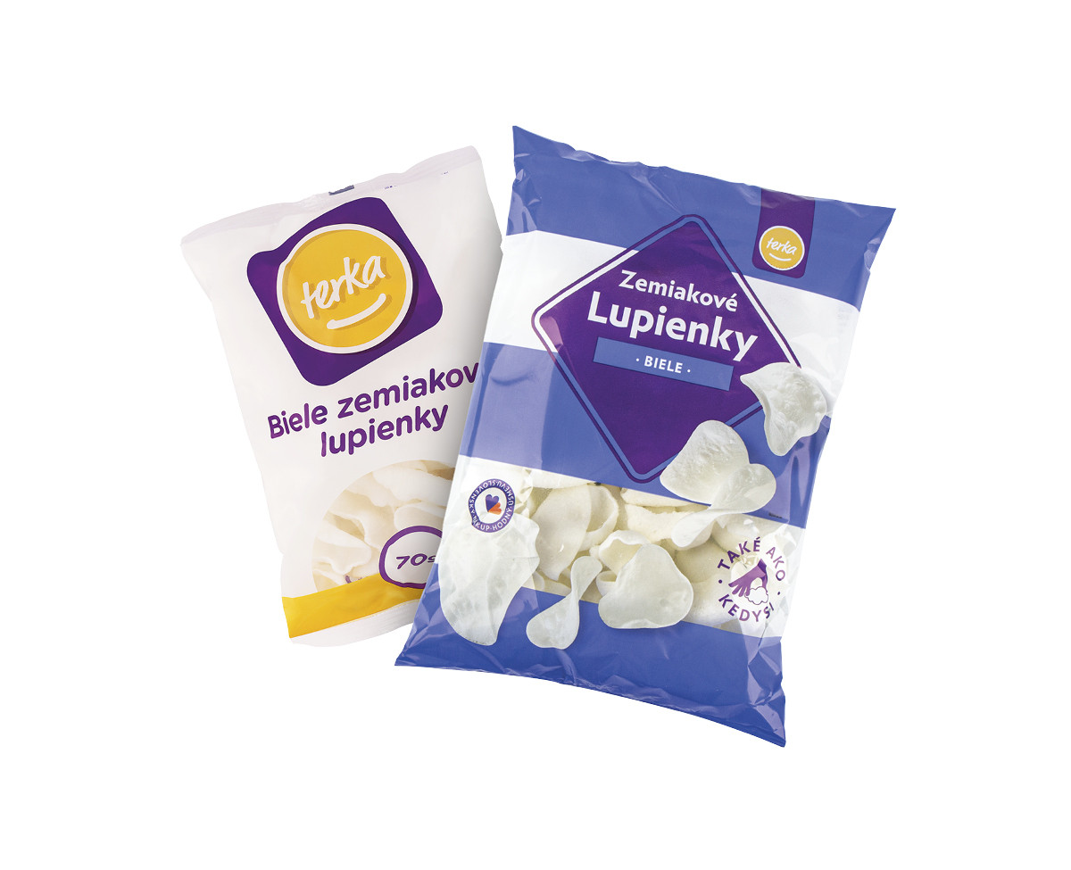Zemiakový škrob 45%, repkový olej 27%, dehydrované zemiaky 15%, modifikovaný škrob, jedlá soľ, cukor, stabilizátor: E471. Môže obsahovať glutén, mlieko, sóju a zeler. Krajina pôvodu základnej zložky (zemiakový škrob): EÚ.